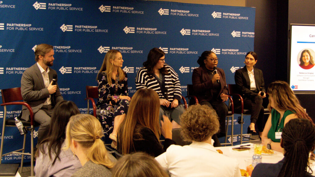 Featured April 24, 2025 Partnership launches online bootcamp for public servants transitioning out of the federal sector Back to Blog What federal communicators need to know about career transitions Date October 8, 2025 Authors James Tran Tags Workforce The Partnership for Public Service recently hosted a panel discussion and networking event with SKDK, a leading strategic communications firm, to help federal communicators navigate career transitions. The panel was moderated by the Partnership’s Will Jenkins and featured four former federal communicators who moved into the nonprofit, corporate, and state and local government sectors: Rebecca Grapsy, software communications manager at the Ford Motor Company Leah Hunter, assistant secretary for external affairs for the Maryland Department of Health Valerie Keys, director of public affairs at SKDK Natalia Vanegas, vice president of communications at the National Council of Nonprofits. Event panelists. From left to right: Will Jenkins, Leah Hunter, Rebecca Grapsy, Valerie “VK” Keys and Natalia Vanegas. Advice for federal employees transitioning to other sectors 1. Translate your federal experiences Federal communicators bring strong experience in organizational leadership, project management, crisis management and more. But they may have to do some translating to ensure future employers appreciate the full value of this expertise. Rebecca Grapsy encouraged federal employees looking for a job to tailor their resumes to the role they are applying for. “[A] resume is not a background check, it’s a marketing document,” she said. Panelists also encouraged job seekers to seek opportunities where their values align with those of a future employer. 2. Nurture your networks Relationships with colleagues, supervisors, mentors and others can help job seekers find new opportunities. Natalia Vanegas talked about using “LinkedIn strategically, whether that’s reaching out to potential employers or following up after applying for a job.” Other panelists described how fostering relationships with the people they work with—both during and after a job—can open new doors to future opportunities and help inform career transitions. Having a referral or a point of contact in an organization can help job seekers get their foot in the door. 3. Keep exploring Career paths are not linear, so it is helpful to stay flexible about what a new job might look like. Panelists cautioned job seekers that it can take two or three times longer than they expect to land a job. Sometimes unexpected roles can help strengthen skills and potentially open a door to more opportunities. Leah Hunter talked about how people around her “[had] this ‘aha!’ moment” where they realized what they were passionate about and what career they wanted to pursue. “I was curious in exploring careers outside public service, but, in the end, I came back to public service. [Give] yourself permission to think about something different or go a different direction,” she said, reflecting on her own path. 4. Practice self-care Transitions can be stressful, so self-care is important. Job seekers should use the time in between jobs to be productive in their communities, networks or professional development. And taking time to rest and relax is important, too. “It might be hard to take care of yourself or find time to relax, but it’s important—because you don’t want to start a new job feeling exhausted or thinking, ‘I don’t even know how I’m going to walk in on the first day with a smile,’” Keys said. Panelists encouraged job seekers to find an activity, whether reading, a hobby or taking a course, that can shift their mindset and expand their skills. The Partnership for Public Service’s FedSupport Hub offers many resources for federal employees transitioning out of government. Subscribe to our weekly newsletter for the latest updates.