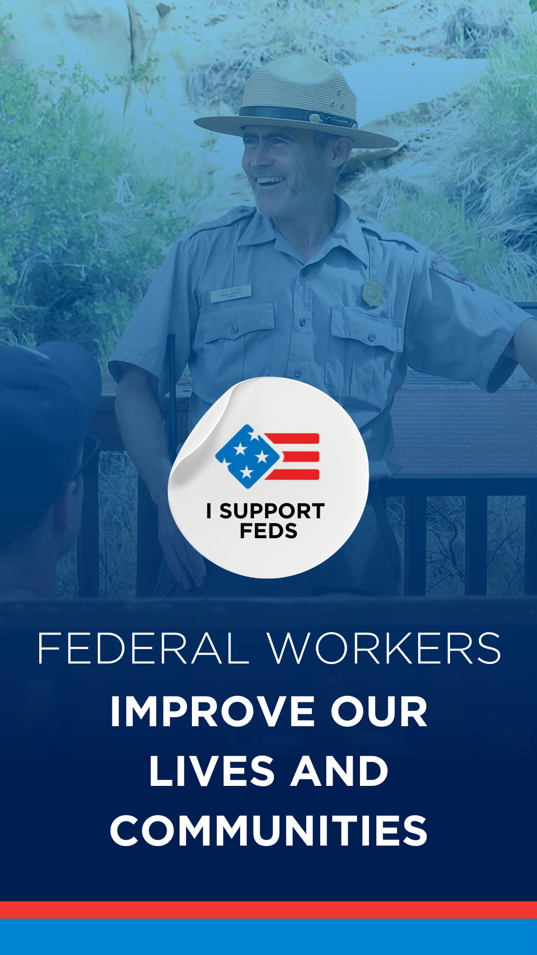 I Support Feds #ISupportFeds Federal employees play a vital role in our everyday lives. Yet today, they face unprecedented threats. Career civil servants are being arbitrarily purged from the federal workforce, agencies are being shuttered and vital public services are being disrupted. These actions seek to upend our government’s professional, nonpartisan civil service, a cornerstone of our democracy. Our nation’s civil servants take a constitutional oath to serve the public good. With little fanfare, they move our nation forward, ensuring our food and water are clean, helping veterans and seniors access their benefits, providing disaster relief, protecting our borders, keeping us safe when we travel, delivering weather forecasts, and more. Civil servants need our support now more than ever. Share a story about a federal employee who has made a difference in your life to help us demonstrate why public servants matter and what is at stake if their work is disrupted. Tearing apart the government’s apolitical, merit-based workforce would undermine federal services and harm the public. Help us protect the civil service and show federal employees that you’ve got their back. Show your support of federal employees. Members of the public: Tell us how a federal employee inspired you or made a positive impact on your community, on our country or on the world. Current and former feds: Let your voice be heard. Share how your work makes a difference. We will feature stories on our website, in our Five Stories of Public Service newsletter and on our social platforms. 10 ways you may have recently interacted with a federal employee 1. Air Travel and Transportation ✈️ 🚊 Transportation Security Administration agents conduct airport security screenings. Federal Aviation Administration employees oversee air traffic control. 2. Social Security and Medicare 💵 🏥 Social Security Administration employees assist with retirement, disability and survivor benefits. Medicare and Medicaid specialists help with health care services. 3. Taxes and Financial Assistance 💰 📝 IRS employees process tax returns and provide tax assistance. Small Business Administration staff help entrepreneurs with loans and resources. 4. Foreign Affairs and National Security 🔒🌐 State Department staff protect U.S. citizens abroad, help secure the release of wrongfully detained Americans, and work with other countries to respond to attacks against the U.S. and its allies. U.S. Agency for International Development personnel provide humanitarian assistance to vulnerable populations across the world. 5. Law Enforcement and Public Safety 🚔 ⚖️ Department of Homeland Security employees investigate crime, protect our borders, prevent cyber attacks and respond to terrorism. Justice Department staff lead criminal investigations, hold bad actors accountable and protect our civil rights. 6. Veterans Services 🇺🇸 🏅 Department of Veterans Affairs employees assist veterans with health care, education and employment. The Veterans Benefits Administration provides veterans and their families with home loans, disability compensation, life insurance and more. 7. Health Care and Public Health 🏥 🩺 Employees at the Centers for Disease Control and the Food and Drug Administration help with public health policies, food safety and disease control. National Institutes of Health researchers conduct medical research and clinical trials. 8. Education and Employment 🎓 💼 Federal student aid workers help individuals apply for and manage financial aid. The Department of Labor provides job training programs for young people, ensures safe and healthy working conditions, and enforces child labor laws. 9. Farming and Food Safety 🚜🍅 Department of Agriculture employees fight pests and diseases that affect agricultural growth and provide farmers and ranchers with crop insurance, disaster assistance and economic aid. The Food Safety and Inspection Service ensures meat, poultry and egg products are safe, wholesome and properly labeled. 10. Climate and the Environment 🌤️⛈️ The National Oceanic and Atmospheric Administration provides the public with daily weather forecasts and severe storm warnings. The Environmental Protection Agency ensures our drinking water is safe and cleans contaminated land and toxic sites. Share a Story Please enable JavaScript in your browser to complete this form.Please enable JavaScript in your browser to complete this form.First Name *Last Name or InitialState/CountryAlabamaAlaskaArizonaArkansasCaliforniaColoradoConnecticutDelawareDistrict of ColumbiaFloridaGeorgiaHawaiiIdahoIllinoisIndianaIowaKansasKentuckyLouisianaMaineMarylandMassachusettsMichiganMinnesotaMississippiMissouriMontanaNebraskaNevadaNew HampshireNew JerseyNew MexicoNew YorkNorth CarolinaNorth DakotaOhioOklahomaOregonPennsylvaniaRhode IslandSouth CarolinaSouth DakotaTennesseeTexasUtahVermontVirginiaWashingtonWest VirginiaWisconsinWyomingAfghanistanAlbaniaAlgeriaAmerican SamoaAndorraAngolaAnguillaAntarcticaAntigua and BarbudaArgentinaArmeniaArubaAustraliaAustriaAzerbaijanBahamasBahrainBangladeshBarbadosBelarusBelgiumBelizeBeninBermudaBhutanBolivia (Plurinational State of)Bonaire, Saint Eustatius and SabaBosnia and HerzegovinaBotswanaBouvet IslandBrazilBritish Indian Ocean TerritoryBrunei DarussalamBulgariaBurkina FasoBurundiCabo VerdeCambodiaCameroonCanadaCayman IslandsCentral African RepublicChadChileChinaChristmas IslandCocos (Keeling) IslandsColombiaComorosCongoCongo (Democratic Republic of the)Cook IslandsCosta RicaCroatiaCubaCuraçaoCyprusCzech RepublicCôte d'IvoireDenmarkDjiboutiDominicaDominican RepublicEcuadorEgyptEl SalvadorEquatorial GuineaEritreaEstoniaEswatini (Kingdom of)EthiopiaFalkland Islands (Malvinas)Faroe IslandsFijiFinlandFranceFrench GuianaFrench PolynesiaFrench Southern TerritoriesGabonGambiaGeorgiaGermanyGhanaGibraltarGreeceGreenlandGrenadaGuadeloupeGuamGuatemalaGuernseyGuineaGuinea-BissauGuyanaHait