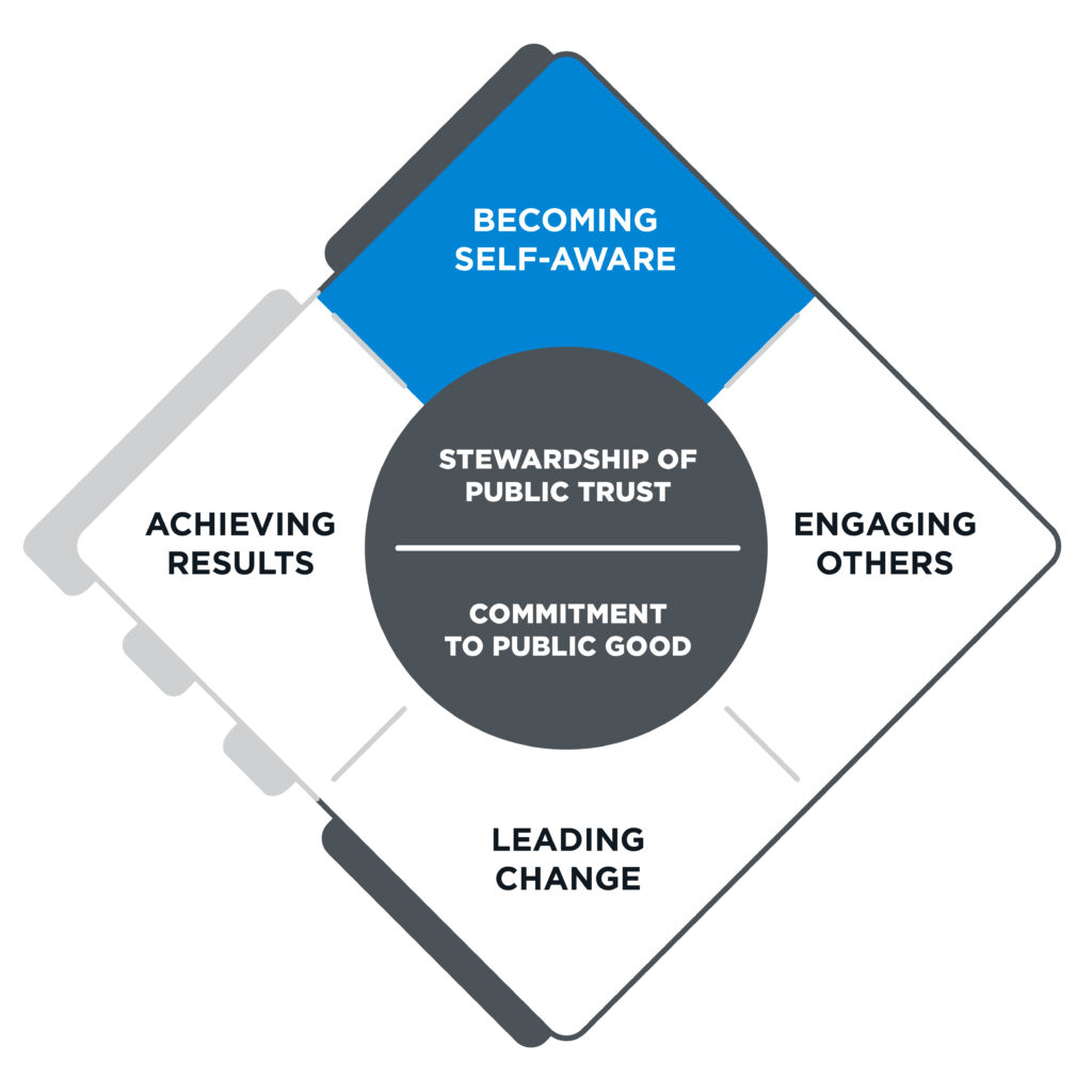 Becoming self-aware is about knowing how your values and motivations drive your behavior. It is essential to personal development and the ability to interact productively with others. In a complex environment, self-awareness is an anchor, enabling you to stay true to yourself and perform at your highest levels. The five subcompetencies to becoming self-aware include: